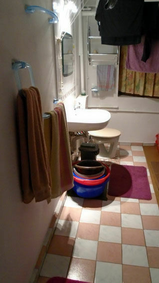Raz w tygodniu przychodzi pani, która sprząta wspólne części: kuchnię, łazienkę, przedpokój (z wyjątkiem pokoju, który jest zamykany na klucz).