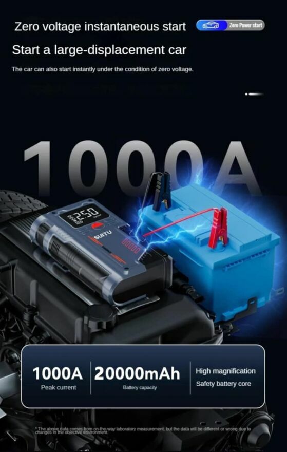 Urządzenie do uruchamiania awaryjnego samochodu 4 w 1 ze sprężarką powietrza 20000 mAhBardzo mocny car jump do odpalania aut benzynowych i disla