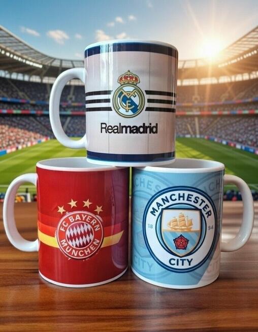 Zestaw 3 kubków ceramicznych 330 ml – Real Madrid, FC Bayern München & Manchester City Trzy kluby, trzy legendy, trzy ...