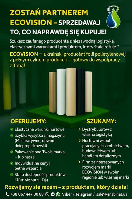 Zostań dystrybutorem folii polietylenowej – współpraca z producentem „Ecovision” Firma Ecovision Sp. z o.o. to ...