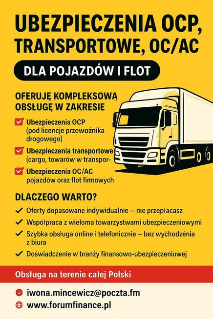 Szukasz sprawdzonego ubezpieczenia dla swojej firmy transportowej lub floty pojazdów? Oferuję kompleksową obsługę w ...
