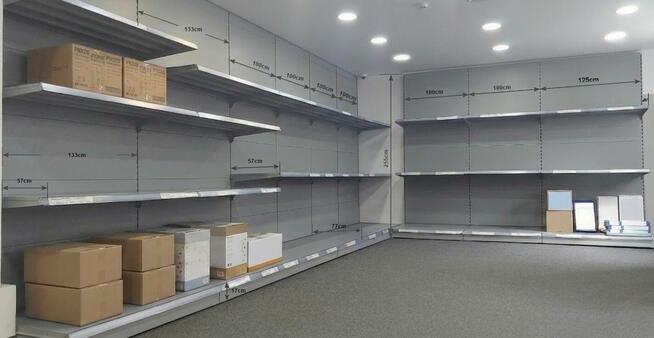 Sprzedam system regałów sklepowych - metalowych MAGO przyścienny H255 G570-770 L990 szary mat, plecy. Sprzedam ...