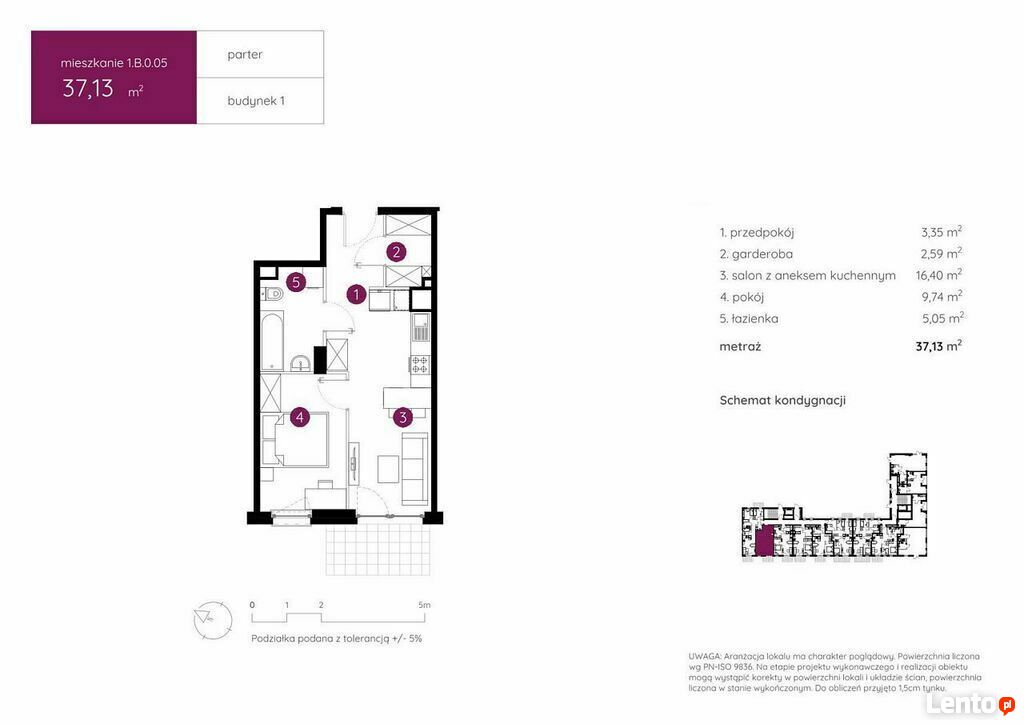 Parterowe mieszkanie o powierzchni 37,13 m2 z ogródkiem.