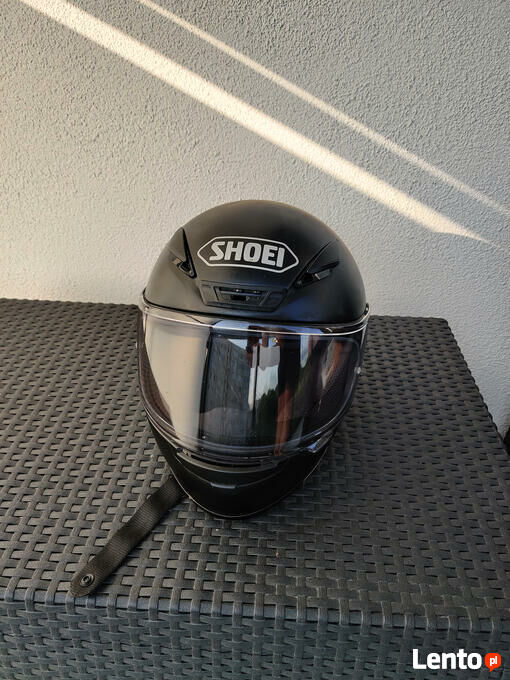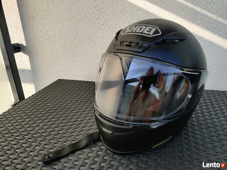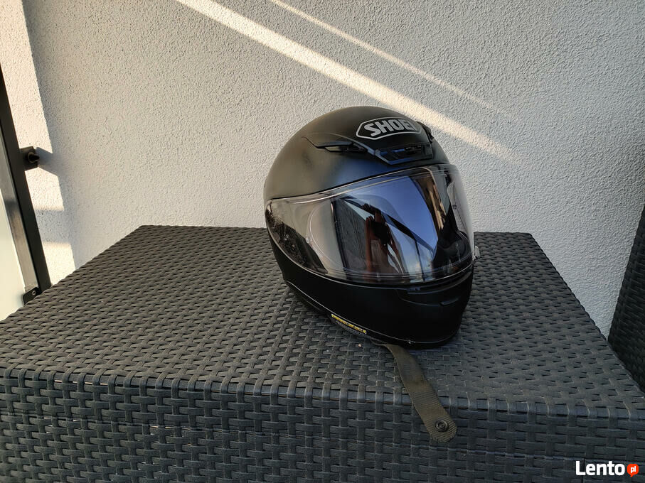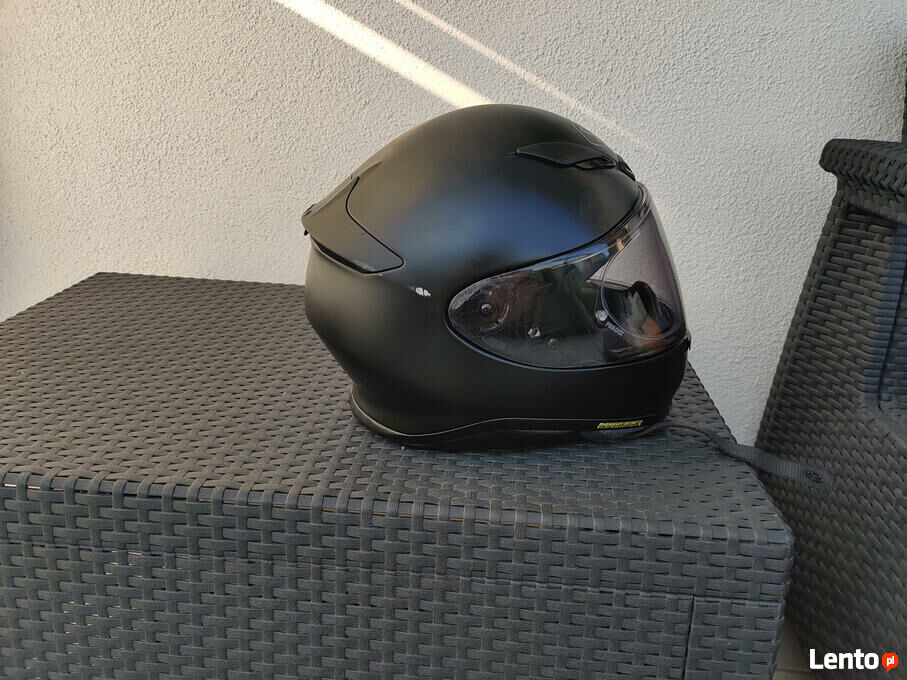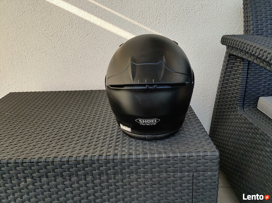 Sprzedam używany kask SHOEI model NXR rozmiar S (55-56cm). Malowanie czarny mat. Kask posiada szybkę fotochromatyczną, która ściemnia się w zależności od natężenia świata słonecznego.Kask w bardzo dobrym stanie, posiada jedynie niewielkie otarcie na prawej stronie.
