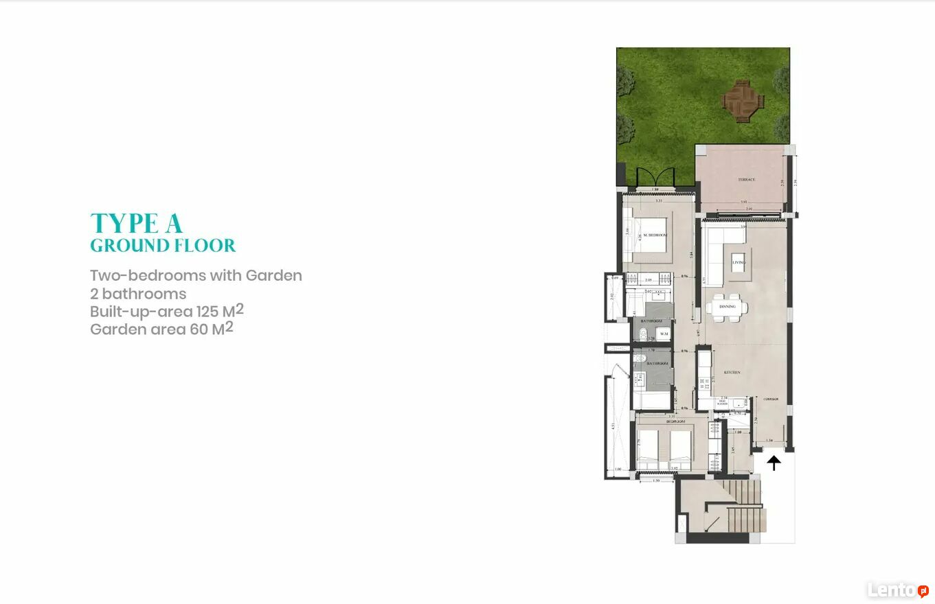 Na sprzedaż: Apartament Type A (2 Sypialnie, Ogród)Lokalizacja: Budynek Alexandra, jednostka DA01-001 (parter) Powierzchnia użytkowa: 125 m² Ogród: 58 m² Cena: 9,386,455 EGP (ok. 281,593 EUR / 1,220,239 PLN)