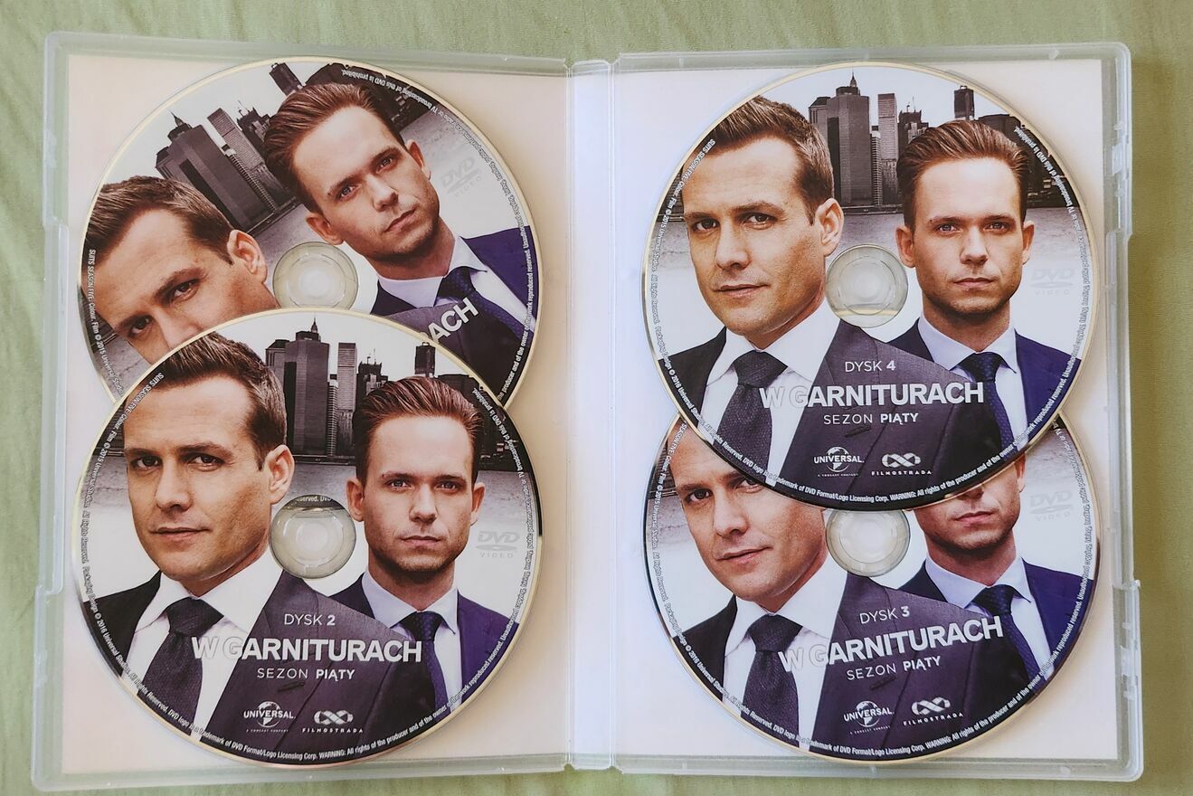 "ogłoszenie widoczne = AKTUALNE"W garniturach, sezon 5, box 4 płyt na dvd. Płyty bez uszkodzeń.