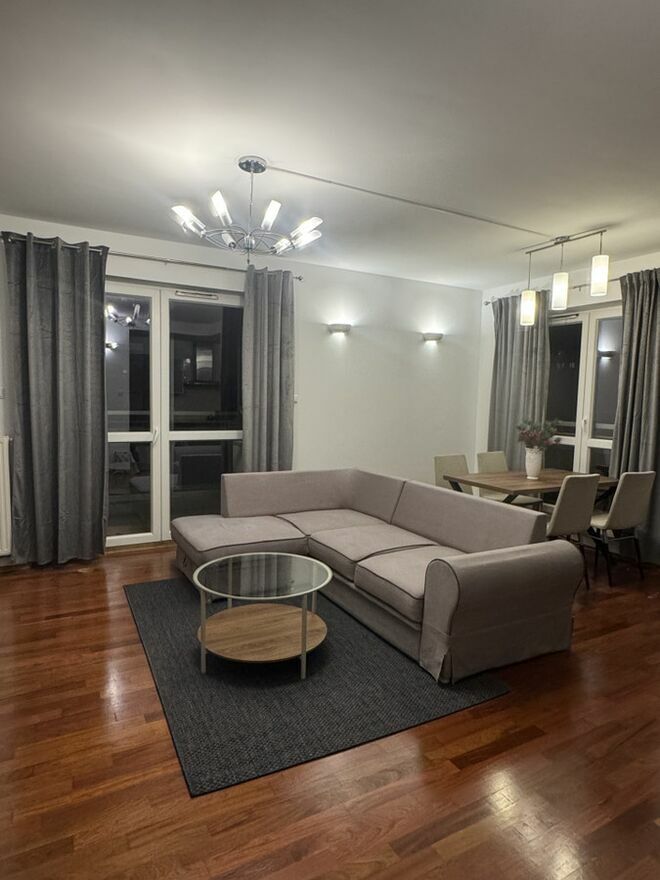 Do wynajęcia rozkładowe narożne mieszkanie o powierzchni 84 m², zlokalizowane na pierwszym piętrze w bloku z windą przy ulicy Włodarzewskiej na Ochocie.Mieszkanie jest świeżo po remoncie. Jest w pełni umeblowane i wyposażone w niezbędne sprzęty AGD (lodówka, pralka, piekarnik firmy Bosch). Składa się z bardzo dobrze doświetlonego salonu z aneksem kuchennym, trzech sypialni, dwóch łazienek, garderoby oraz dużej oszkolonej logi.