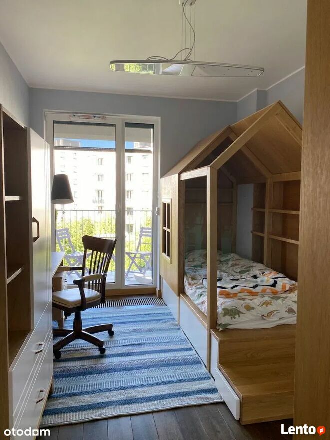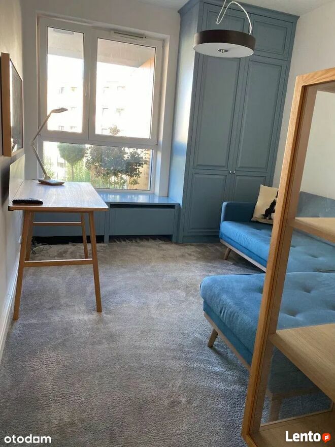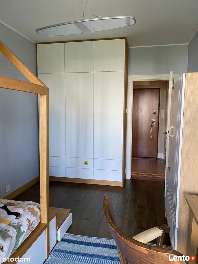• Druga sypialnia/gabinet – idealna jako pokój dziecięcy, miejsce pracy lub dodatkowa sypialnia, również wyposażona w szafę i biurko.