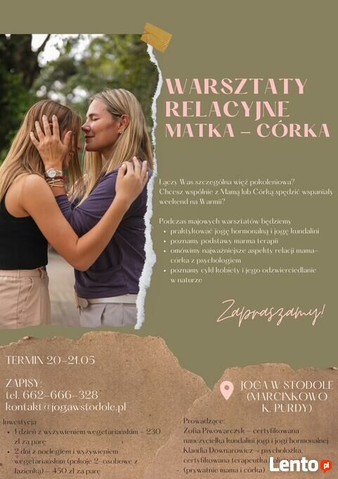 Witaj pośród warmińskich lasów, jezior i łąk. Zapraszamy Cię do tradycyjnej chaty z ponad 120 letnią tradycją na warsztaty relacyjne Matka i córka. Istnieje możliwość odbycia warsztatów z wyżywieniem i noclegiem. Lub bez noclegu. Cenna podana dotyczy Noclegu i wyżywienia.Po więcej informacji zapraszamy na naszą stronę https://jogawstodole.pl