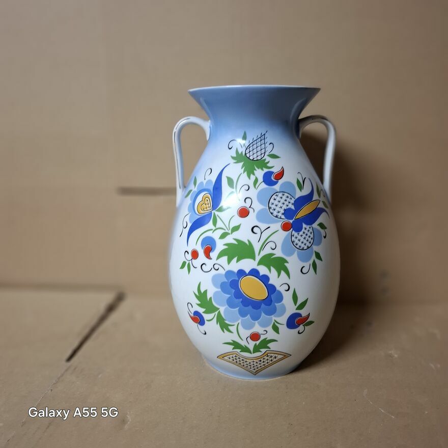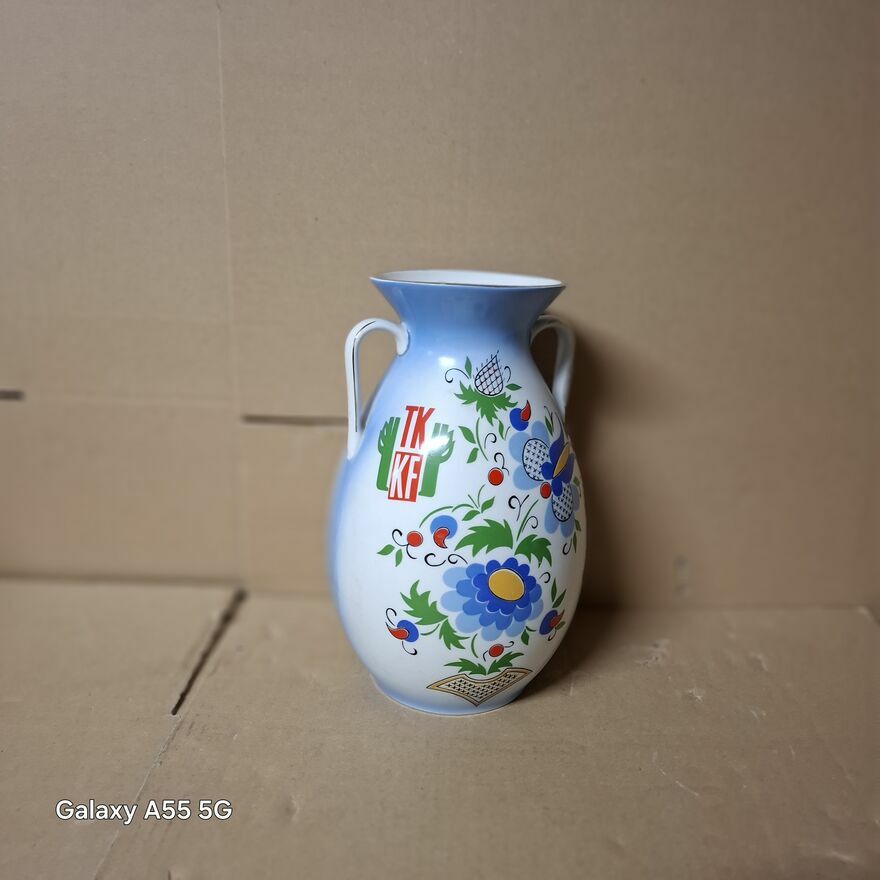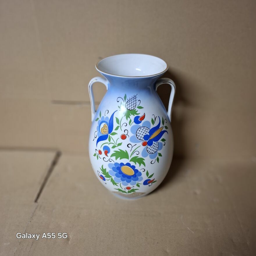 Przedstawiony przedmiot to wazon z porcelany stołowej, wyprodukowany przez Zakłady Porcelany Stołowej „Lubiana”.Dekorowany jest wzorem kwiatowym, który imituje klasyczny haft kaszubski.