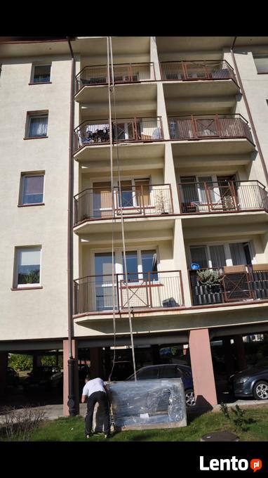 Witam serdecznie.*Wykonujemy wciąganie nietypowych mebli na pasach przez okno