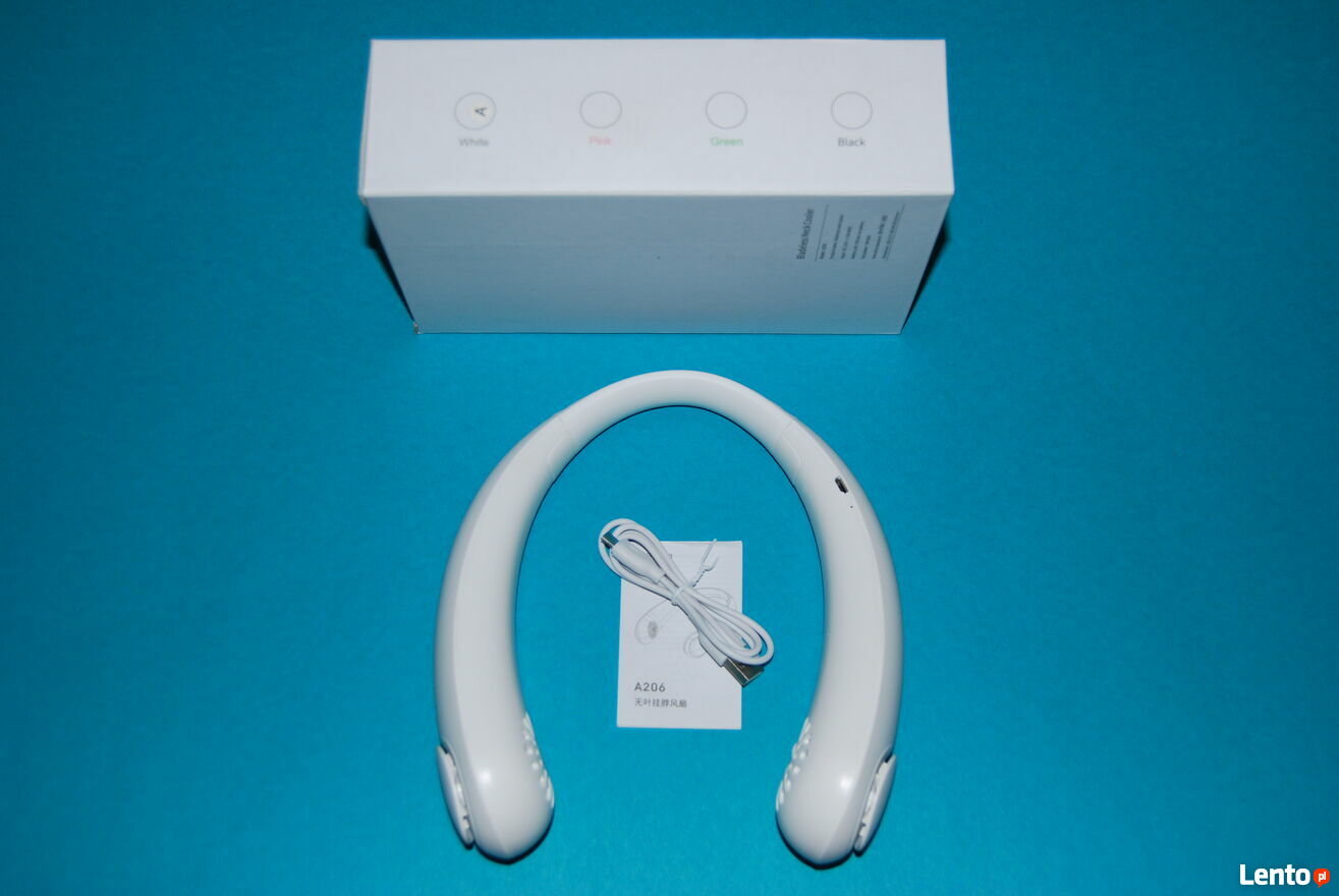 Dzień dobry.Sprzedam Bladeless Neck Cooler A206, przenośny wentylator bezłopatkowy, który zapewnia komfortowy i skuteczny sposób chłodzenia w gorące dni. Lekka i ergonomiczna konstrukcja idealnie pasuje na szyję, gwarantując swobodę i wygodę użytkowania. Specyfikacja: Model A206, zasilanie wejściowe: DC 5.0V – 1.0A MAX, rodzaj baterii: akumulator litowo-jonowy, moc wentylatora: 5W MAX Wymiary: 210 mm (długość) x 140 mm (szerokość) x 61 mm (wysokość) Idealny na gorące dni w pracy lub w domu, podróży, spacerów i aktywności na świeżym powietrzu, osób poszukujących przenośnego i wydajnego rozwiązania chłodzącego.