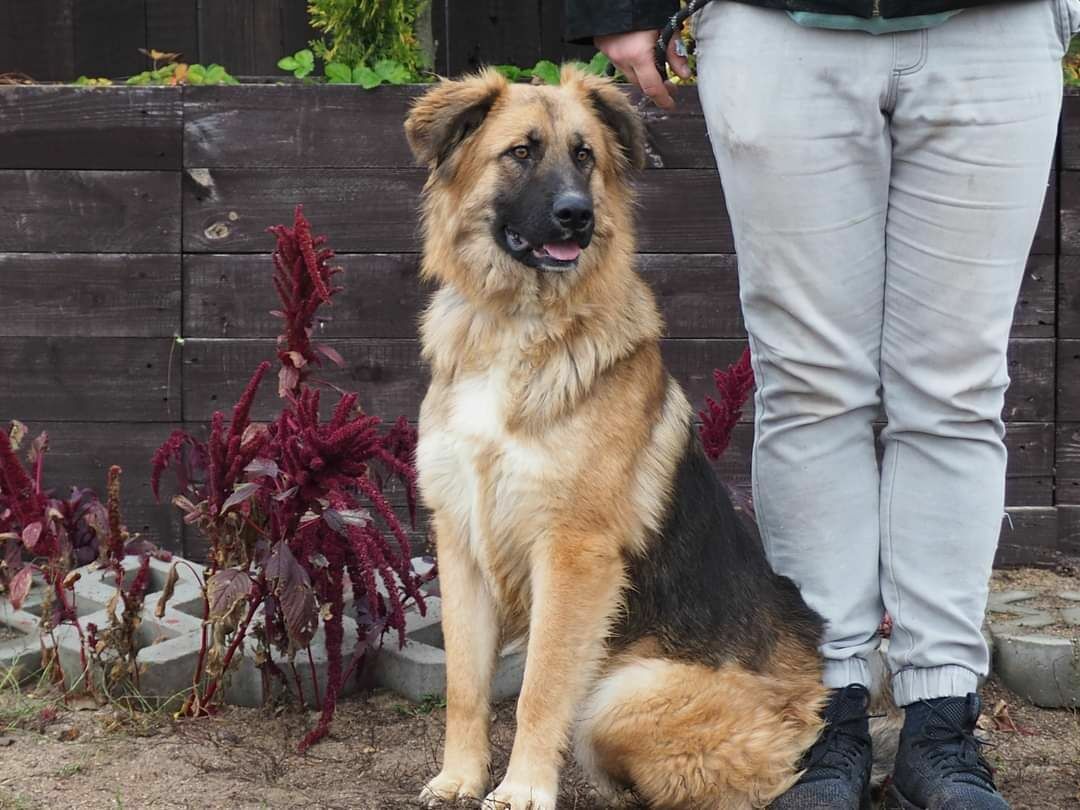 Berlin ma ok. 2 lata (ur.2022) to duży pies - waga 28 kg, wysokość 64 cm.W psim świecie ten młody kawaler zapewne uchodzi za wielkiego amanta i lokalnego mistera ;) ale z takim wyglądem nie ma się co dziwić hihi.