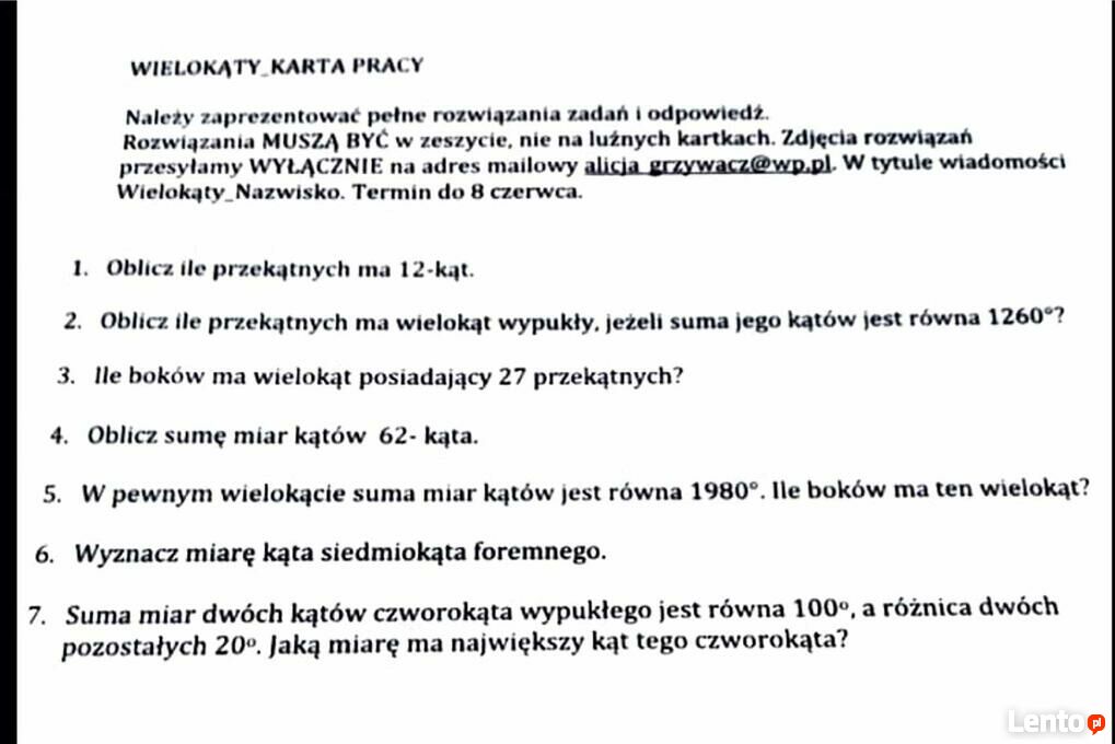 "Wielokąty" - Zestaw 7 rozwiązań. poziom - Studia______________________________