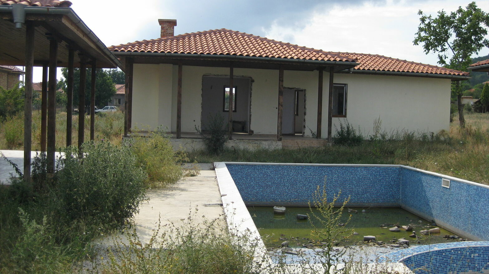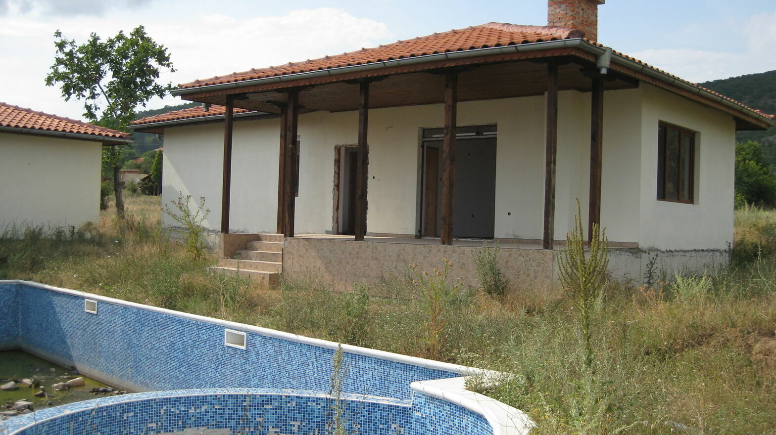 Trzy niedokończone bungalowy z 2 sypialniami każdy.