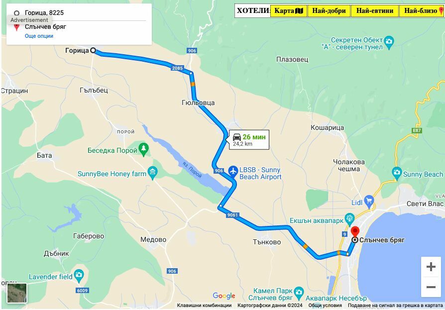 Wieś Gorica znajduje się 24,2 km od Słoneczny Brzeg, Bułgaria