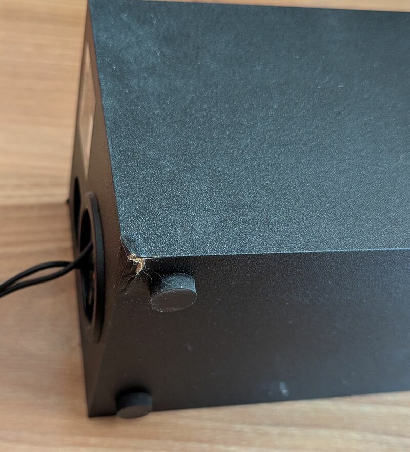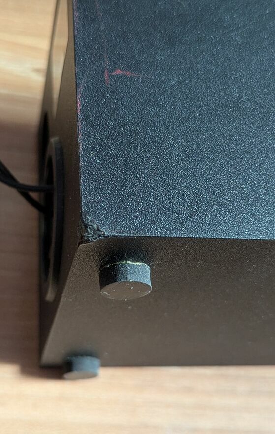 Ważne: Kolumny posiadają mankamenty kosmetyczne — obicia i wgniecenia na tylnych narożnikach obudów (widoczne na zdjęciach). Nie wpływa to w żaden sposób na jakość dźwięku, a po ustawieniu na półce wady te są praktycznie niewidoczne.