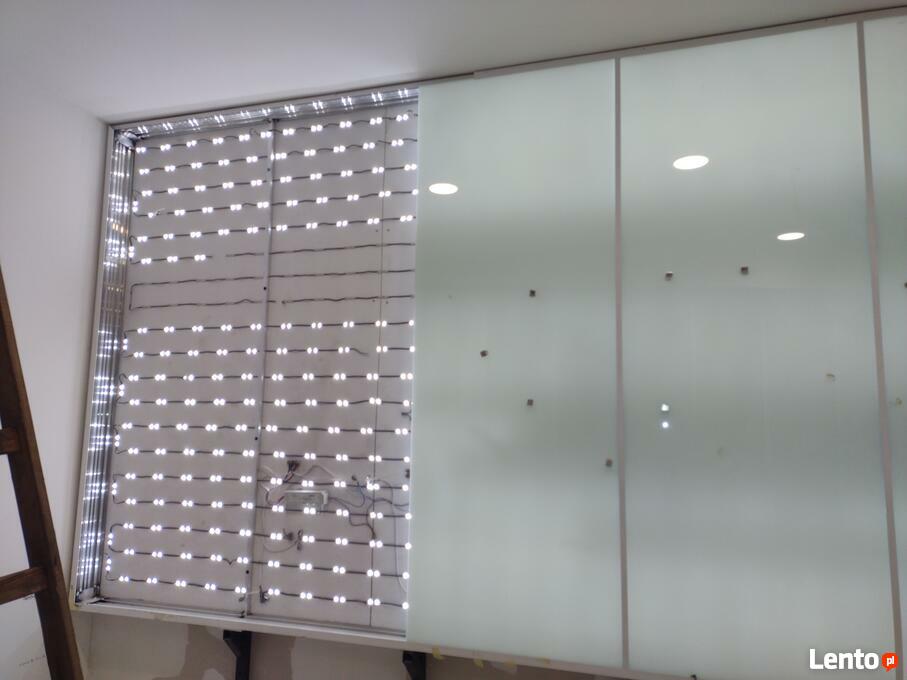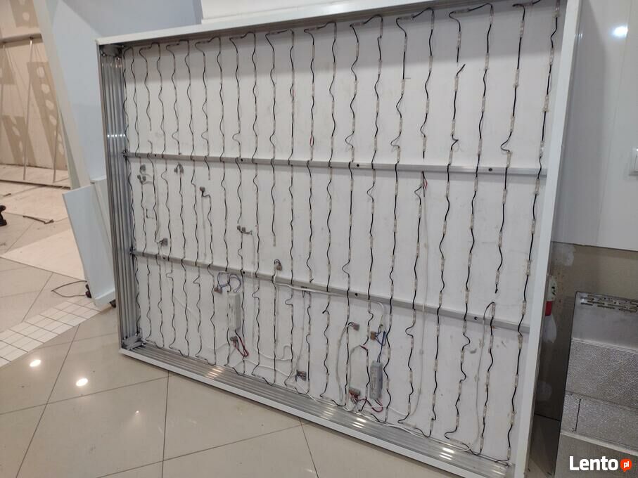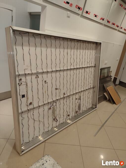 Mam do zaoferowania witrynę podświetlaną LED. Składa się z dwóch modułów: konstrukcja aluminiowa, szyby klejone, na szyby przyklejona matowa folia. Na witrynie naklejona była nazwa firmy - napis zdemontowany, używana o wymiarach :
