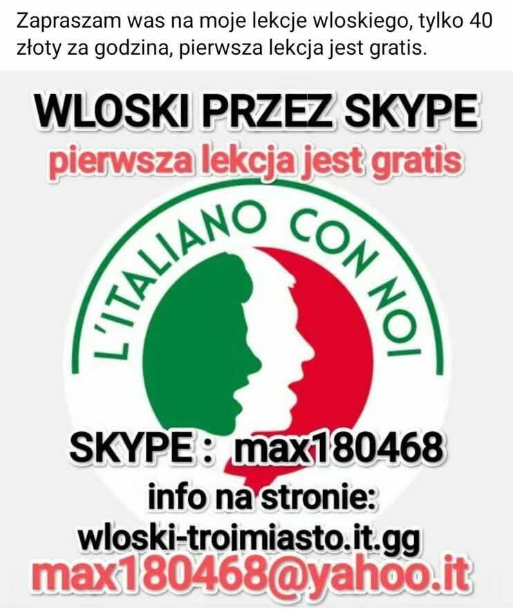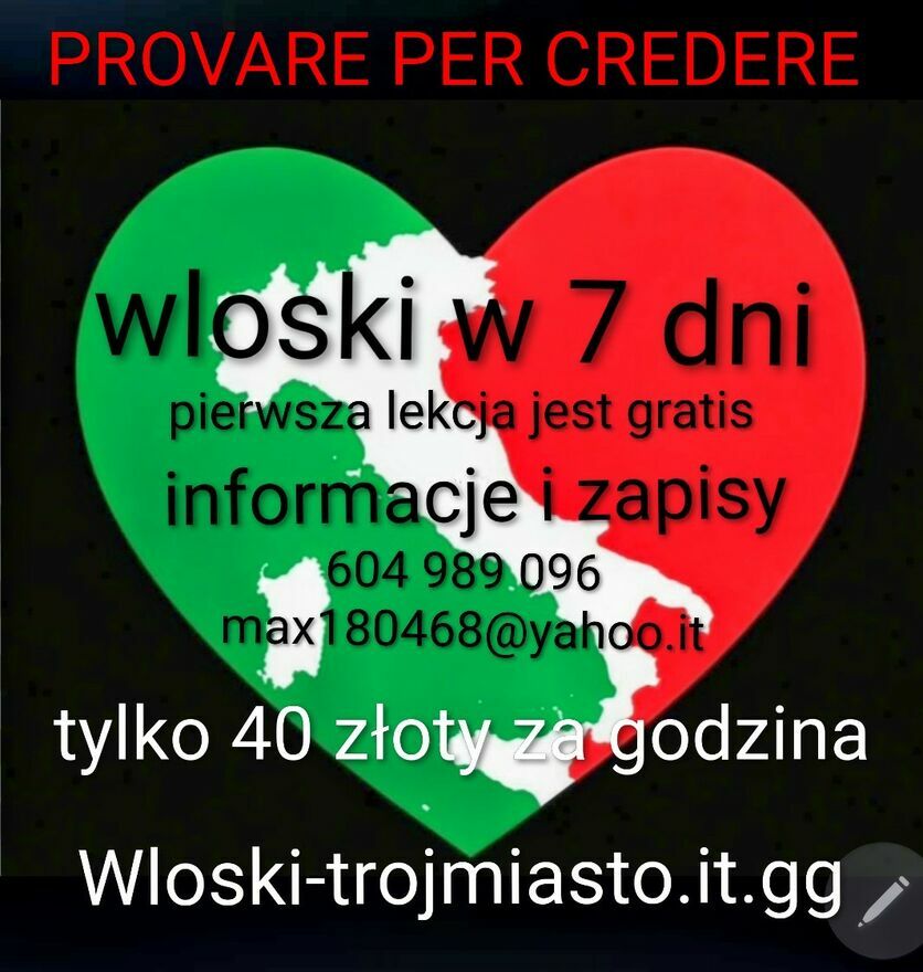 Wloski,lektor rodowity wloch, zapraszam cie na moje lekcje wloskiego, tylko 40 złoty za godziny, pierwsza lekcja jest gratis.604 - pokaż numer telefonu -
