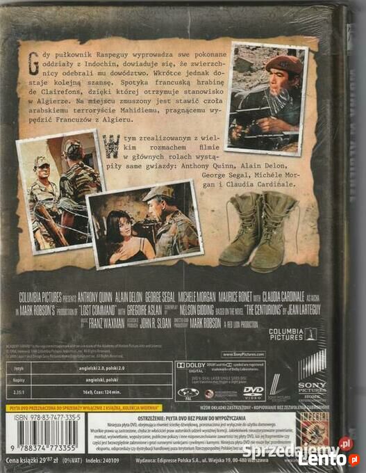 Wojna w Algierze [DVD] Lost Command Kraj: USA Rok produkcji: 1966 Reżyseria: Mark Robson Scenariusz: Nelson Gidding, Jean Lartéguy Muzyka: Franz Waxman Obsada: Anthony Quinn, Robert Rietty, Claudia Cardinale, Alain Delon, Burt Kwouk, Aldo Sambrell, Jacques Marin, George Segal, George Rigaud, Grégoire Aslan, Maurice Ronet, José María Caffarel, Marie Burke, Manuel de Blas, Al Mulock, Mich?le Morgan, Jean-Claude Bercq, Walter Kelley, Jean Servais, ... Opis Zrealizowana z wielkim rozmachem Wojna w Algierze opowiada o człowieku, który nie cofnął się przed niczym by trafić na karty historii. Raspeguya gra wielki Anthony Quinn, zmarły przed kilkoma laty aktor, który w swojej karierze występował w takich arcydziełach kina światowego jak La Strada czy Grek Zorba. W roli terrorysty oglądamy George’a Segala, etatowego „złego faceta”, popularnego zwłaszcza w latach 70. Oprócz tego w Wojnie w Algierze występują takie gwiazdy jak Claudia Cardinale czy pamiętny z Windą na szafot Maurice Ronet. Stan produktu Produkt ORYGINALNY. Płyta NOWA. Kraj wydania: Wielka Brytania Czas trwania: 124 min. Napisy: polskie, angielskie, Dźwięk: Dolby Digital 2.1 angielski Dolby Digital 1.0 niemiecki Polska wersja: napisy,lektor Obraz: 16:9 / 2,35:1 Region DVD: 2 Opakowanie: książkowe Liczba nośników: [1xDVD] Karton 83 Ogłoszenie jest aktualne dopóki znajduje się na stronie . Odbiór osobisty lub wysyłkaSprawdź zainteresowanie tym ogłoszeniem