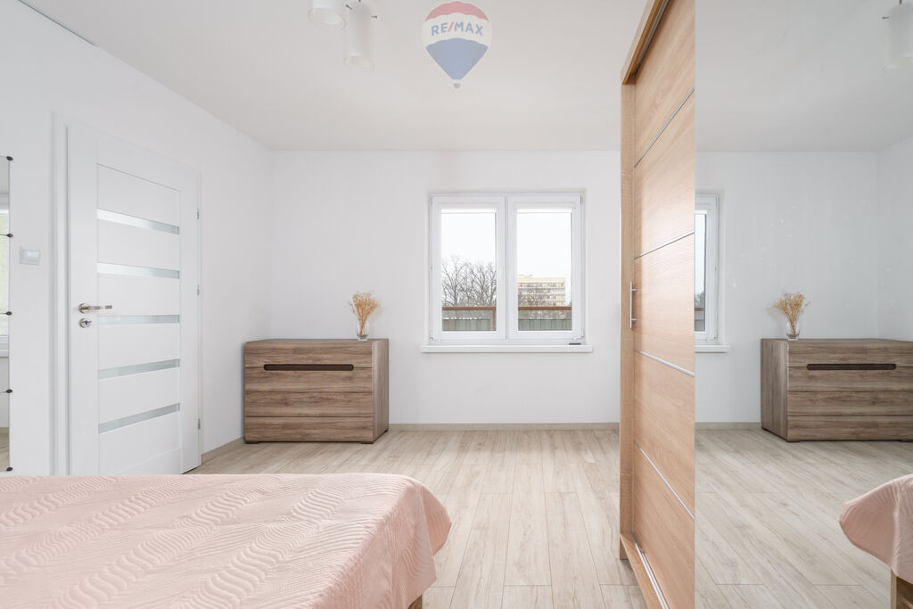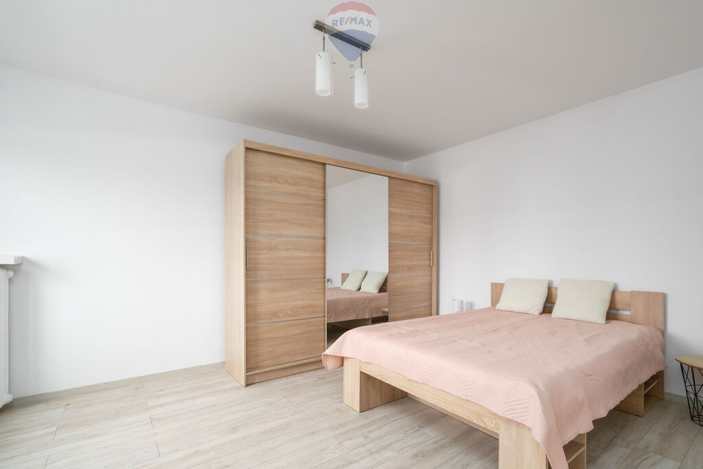 - sypialnia: łóżko dwuosobowe z materacem, duża szafa ubraniowa,
