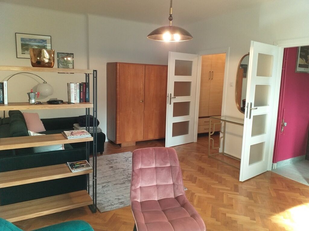 Mieszkanie jest umeblowane meblami zgodnie z zamieszczonymi zdjęciami i wyposażone w sprzęt AGD, m.in. lodówkę, garnki, talerze, czajnik oraz TV. W pobliżu: liczne sklepy spożywcze, w tym Żabka / Biedronka. Wokół liczne tereny zielone (park Moczydło, lasek na Kole). Do metra Księcia Janusza spacerem ok. 10-15 min; do Pl. Bankowego tramwajem 8-10 min, do Dworca Centralnego tramwajem 20 min . Samochód można bezpłatnie parkować na terenie ogrodzonego osiedla lub przy ul. Obozowej.