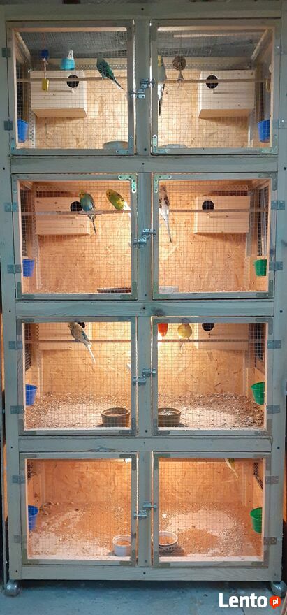 Duża piękna woliera do legów mniejszej egzotyki.Woliera ma boksy dla par lęgowych do hodowli.