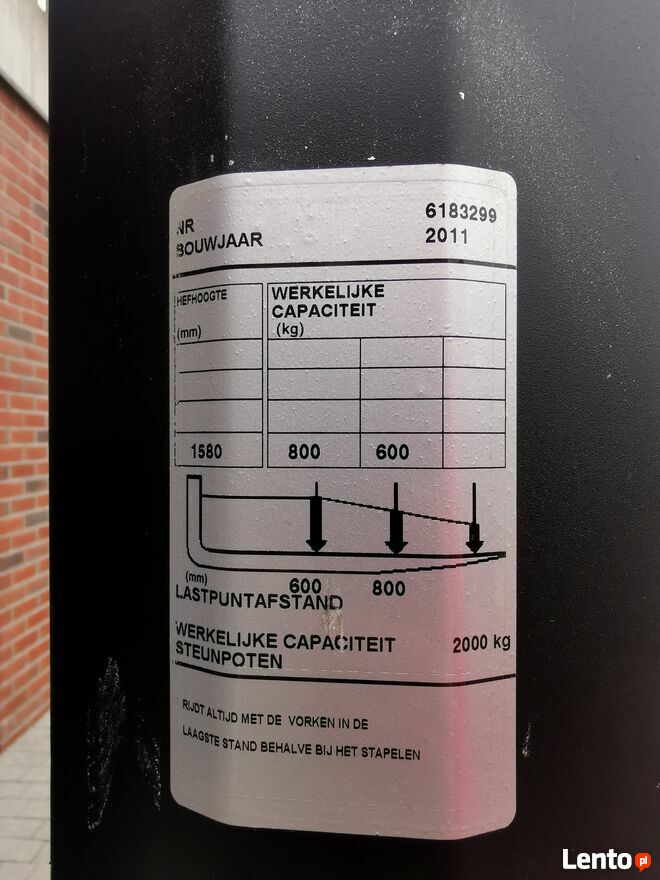 Maksymalna masa podnoszonego towaru na wysokość 1580 mm: 800 kg