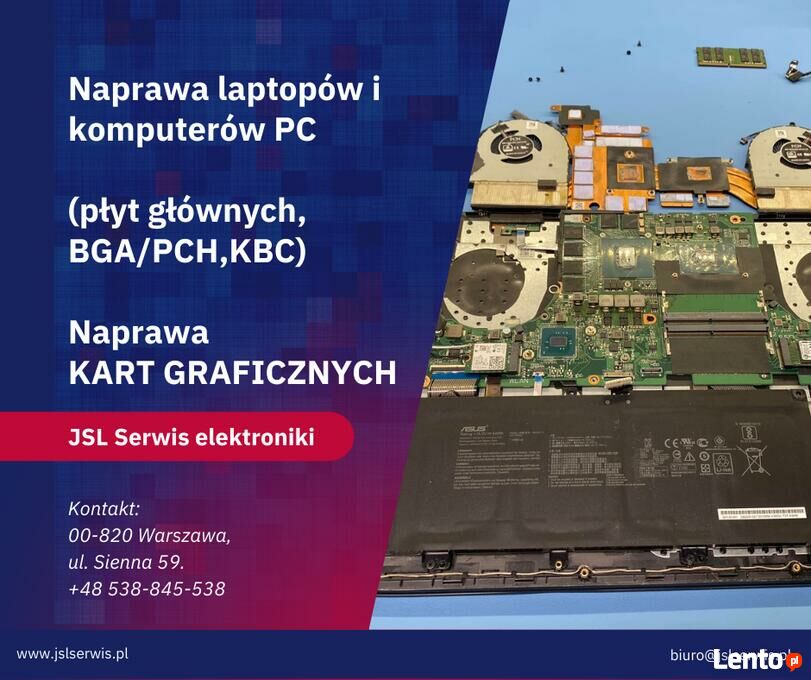 Witamy wszystkich. Zapraszamy do współpracy z naszym serwisem. Serwis laptopów i komputerów - JSL serwis elektroniki.Adres: 00-820 Warszawa, ul. Sienna 59 lok. U2