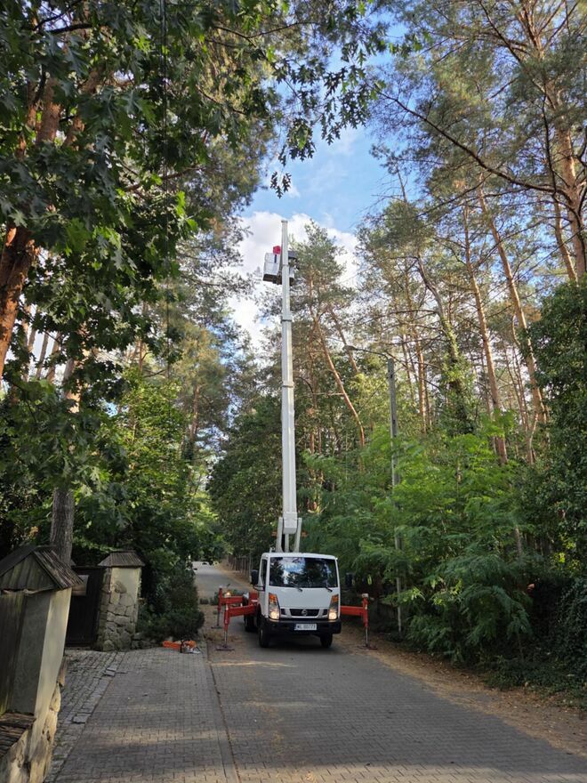 -Wycinka drzew przy pomocy podnośnika koszowego