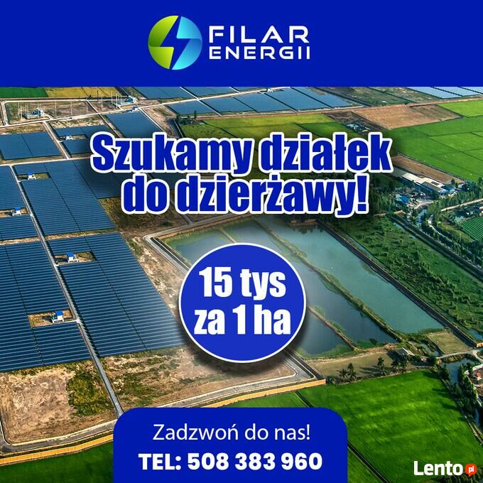 Dzierżawimy grunty na okres do 29 lat z atrakcyjną stawką do 15 000zł z jednego hektara gruntu rocznie. Działamy na terenie całej Polski.Wymagania poszukiwanych działek :