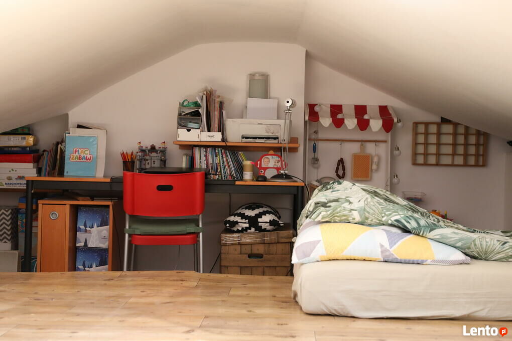 Dodatkowym atutem lokalu jest wygospodarowana dodatkowa przestrzeń w formie antresoli doświetlonej dwoma oknami połaciowymi.