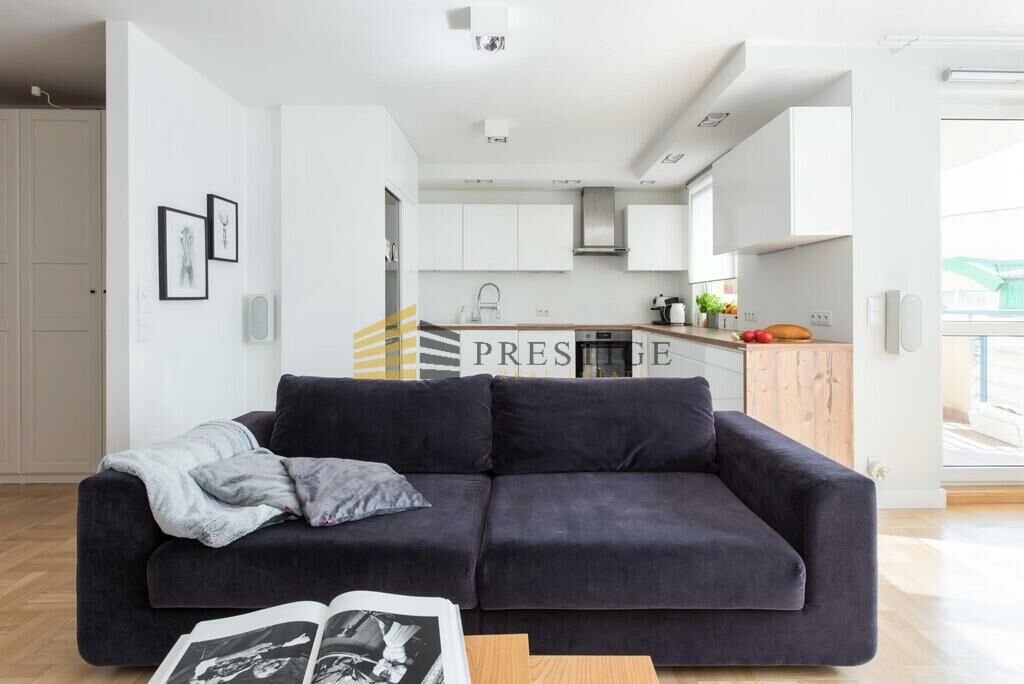 with access to a balcony. The balcony offers views of Warsaw's modern