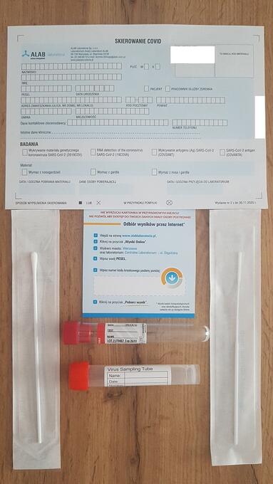 - Test RT-PCR na SARS-CoV-2 wymaz z nosogardzieli
