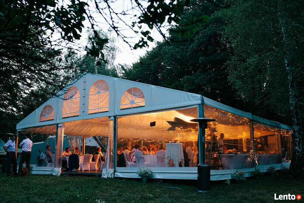 Oferujemy Państwu kompleksowe usługi: wynajem namiotów stretch, hal namiotowych, wynajem namiotów bankietowych, wynajem wyposażenia bankietowego, wynajem mebli eventowych oraz dekoracja światłem. Dysponujemy własną ekipą montażową i flotą samochodową, dzięki czemu zapewniamy dowóz hal i wyposażenia, ich montaż, demontaż oraz obsługę w trakcie eventu. Posiadamy estetyczne, nowoczesne hale namiotowe i bankietowe, które stanowią doskonałe rozwiązanie na organizację wydarzenia w plenerze. Realizujemy montaż hal namiotowych nawet siedem dni w tygodniu. Zamówiony sprzęt i wyposażenie dowozimy własnymi środkami transportu, co pozwala nam zaproponować Państwu konkurencyjne ceny, a przy kompleksowej obsłudze eventu także promocyjne rabaty.W naszej ofercie znajdą Państwo także organizację ślubu w plenerze, śluby plenerowe.Dysponujemy halą namiotową o stałej szerokości 12m, 15m i 20m o dowolnej długości (moduły 5m) w zależności od potrzeb.