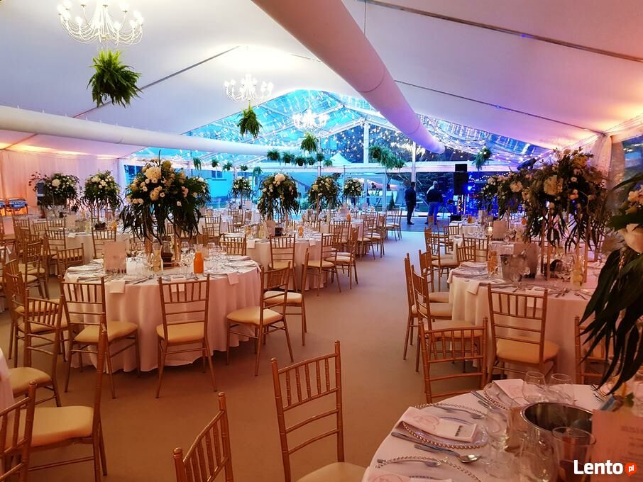 oświetlenie (ozdobne żyrandole). Ściany hali namiotowej mogą być z