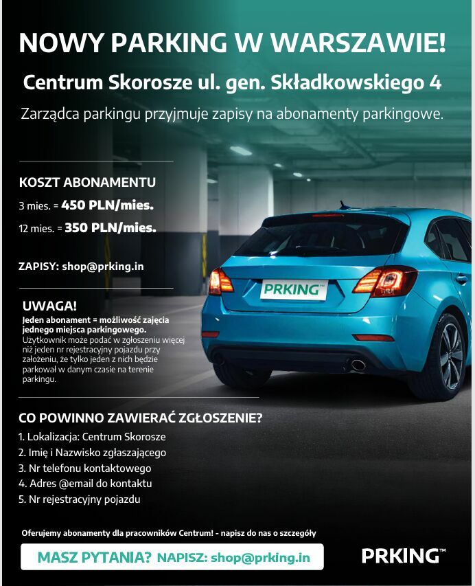 Nowy Parking w Warszawie - Centrum SkoroszeUl. gen. Składowkiego 4