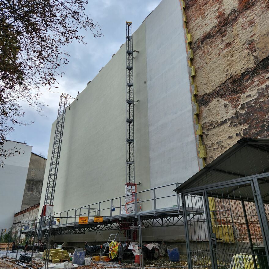 PLATFORMY ROBOCZE SĄ IDEALNYM ROZWIĄZANIEM DO WYKONYWANIA WSZELKIEGO RODZAJU PRAC ELEWACYJNYCH, INSTALACJI, MUROWANIA ORAZ PRZEWOŻENIA PASAŻERÓW I MATERIAŁÓWPODESTY ROBOCZE MASZTOWE - to urządzenia łączące w sobie dwie funkcje windy budowlanej oraz podestu roboczego, umożliwiają jednocześnie przewożenie pracowników i materiałów na wysokość do 300 metrów . Szerokość robocza podestu jest znacznie większa w porównaniu do rusztowań tradycyjnych od 1.6 m do 3 m , co zapewnia swobodę działania oraz daje duże możliwości załadunku, zapewniając przy tym wysoki poziom bezpieczeństwa oraz wygodę użytkowania. Podesty ruchome masztowe gwarantują oszczędność kosztów i czasu w miejscu wykonywania prac.