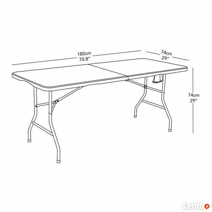 Wymiary stołu (rozłożony): 180 x 74 x 74 cm (długość x szerokość x wysokość)
