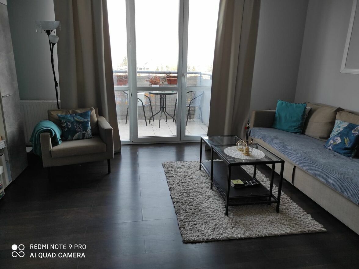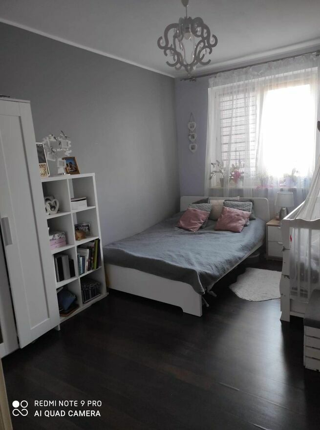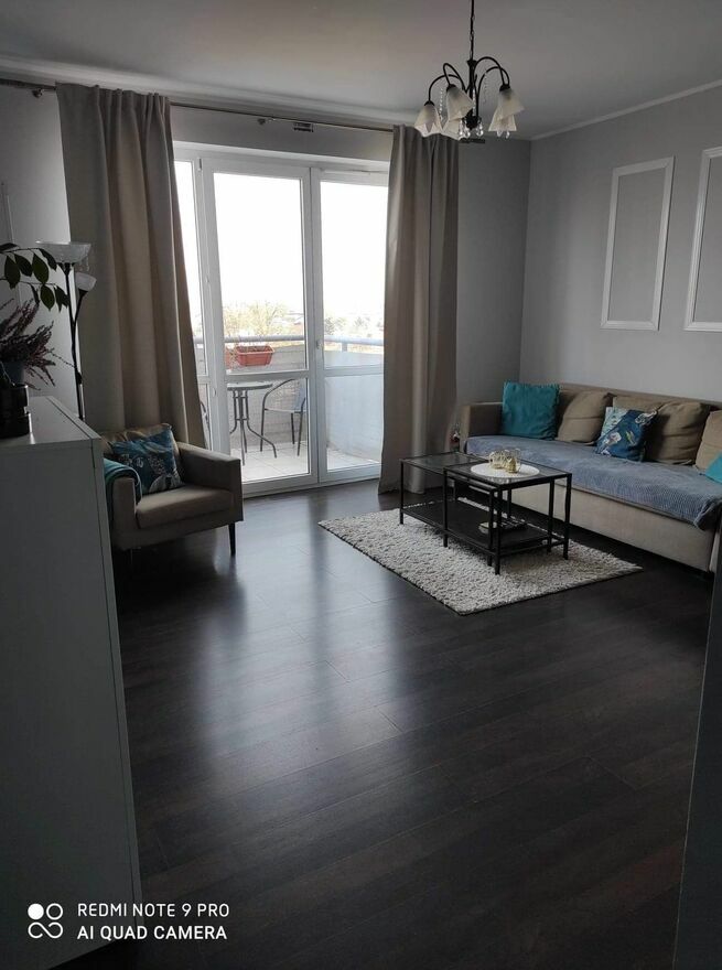 Mieszkanie jest ciche oraz posiada duży balkon z widokiem na zieleń.
