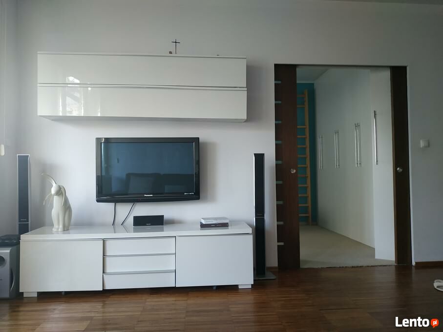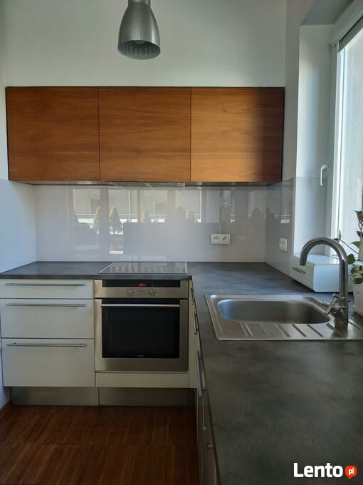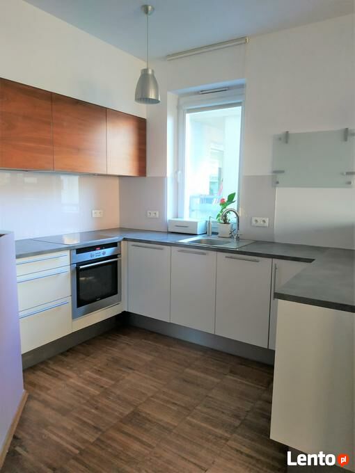 Kuchnia jest wyposażona w sprzęt bardzo dobrej jakości niemieckiej marki Siemens, meble duńskiej marki HTH. Wszystko tworzone na zamówienie by idealnie wkomponować w aranżację przestrzeni. Salon oddzielony barkiem z drewna typu Orzech Włoski. Szafki wiszące - fronty górne orzech włoski, dolne biały mdf połysk. Sprzęt: płyta ceramiczna, okap, piekarnik, zmywarka i lodówka (Siemens). W salonie TV, DVD, Nagłośnienie, w łazience pralka. W wyposażeniu mieszkania elementy drobne podlegają uzgodnieniu. Bardzo miłe sąsiedztwo. Cisza i spokój. Mieszkania od wnętrza osiedla sprawia, że nawet zimą nie czuć wiatru czy zimna. W pokoju w ramach wyposażenia narożnik, krzesła hokery, stół i krzesła, szafka na DVD, szafki wiszące na książki. W sypialni regał z biurkiem, łóżko, szafa w zabudowie.