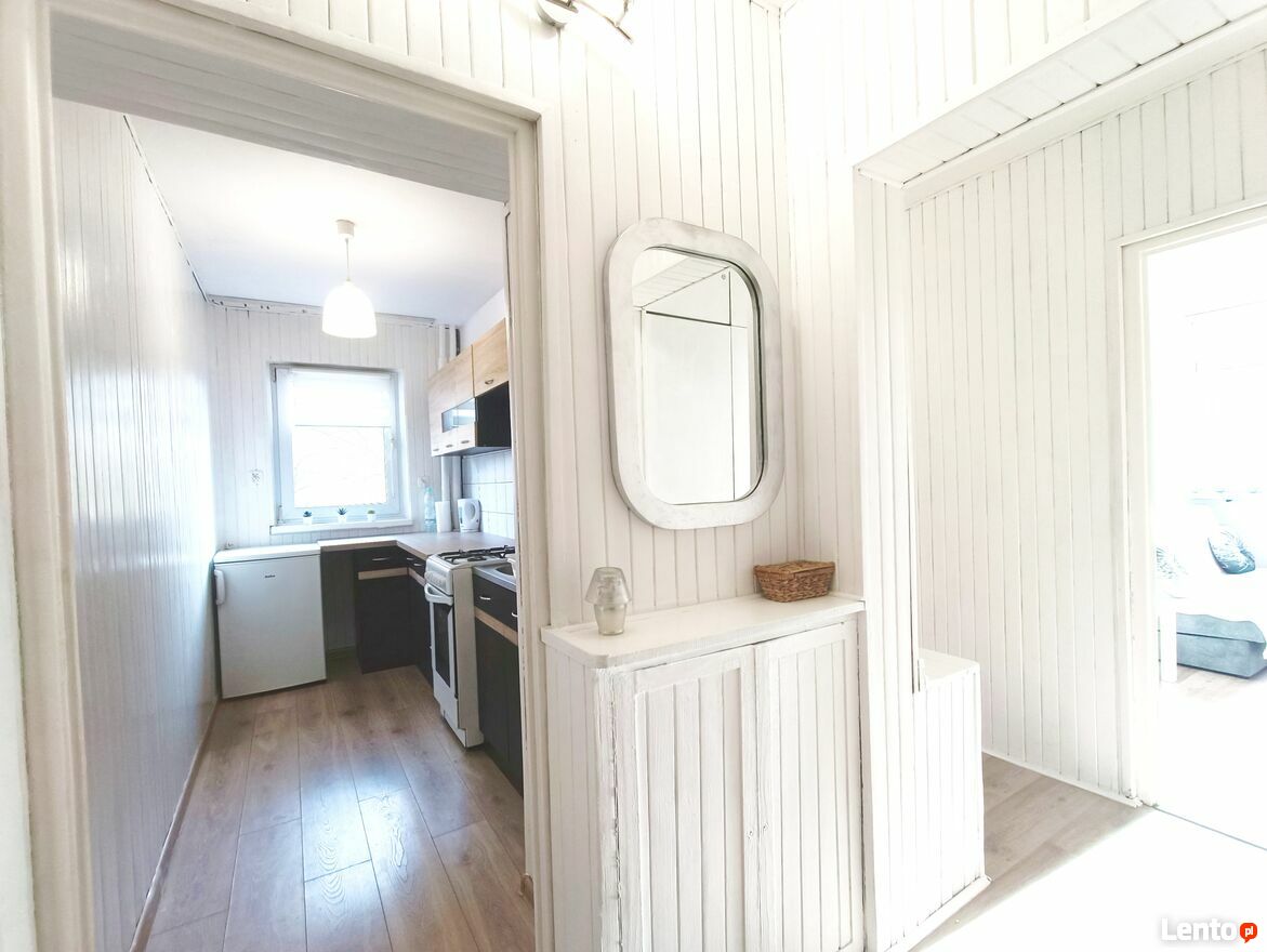 W każdym pokoju jest łózko, szafa i stolik. Do dyspozycji najemców wyposażona kuchnia : kuchnia gazowo-elektryczna z piekarnikiem, lodówka, mikrofala, czajnik elektryczny. W szafach odkurzacz i podstawowe naczynia a w łazience pralka.