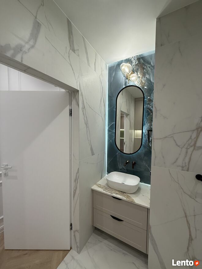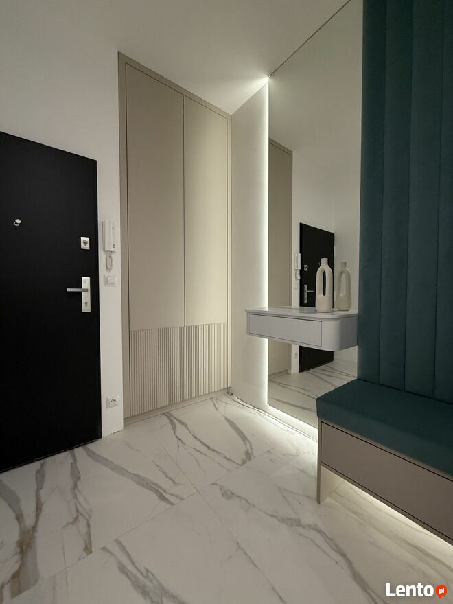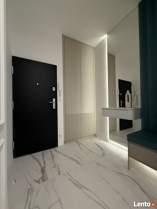 Mieszkanie jest pełni umeblowane oraz wyposażone w niezbędny sprzęt RTV i AGD (pralka, piekarnik, zmywarka, mikrofalówka, kawiarka, TV - wkrótce będzie). Zostało wykończone w najwyższym standardzie - wnętrze zostało zaprojektowane przez architektów wnętrz a wykończono je między innymi przy użyciu materiałów najwyższej jakości granitu i włoskich płytek. Dodatkowym atutem są wysokie sufity (2,9m.) oraz duże okna dzięki czemu mieszkanie jest jasne i przestronne. Wszelkie zabudowy meblowe zostały wykonane przez stolarza na wymiar. W mieszkaniu jest klimatyzacja.
