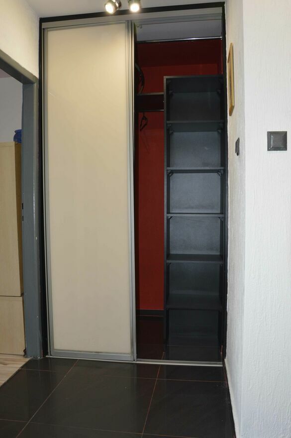 • W przedpokoju duża garderoba, szafy w zabudowie, lustro.