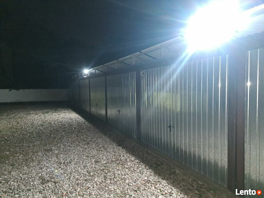 Blaszany garaż 15m2 na terenie prywatnej, ogrodzonej posesji.Teren oświetlony.Garaż posadowiony na betonowym podłożu, drzwi garażowe uchylne do góry ułatwiają korzystanie. Dojazd do garażu utwardzony pod same drzwi.W garażu doprowadzony jest prąd .Oświetlenie halogenowe plus podwójne gniazdo elektryczne.Garaż może służyć jako magazyn,schowek . Możliwość korzystania 24/7 .