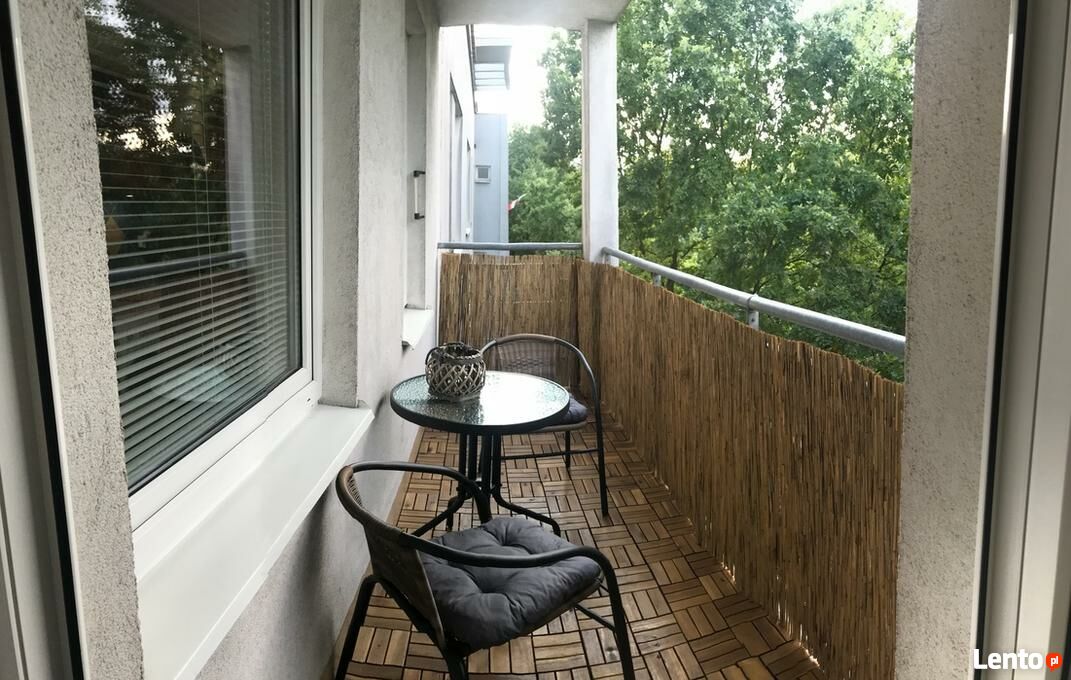 Mieszkanie z trzema oknami i wyjściem na balkon wyposażony w stół i 2 krzesełka z widokiem na park. Kuchnia umeblowana z oknem, otwarta na pokój , pomiędzy pomieszczeniami kącik jadalny. W salonie znajduje się rozkładany narożnik, 2 komody, fotel oraz stolik kawowy. Przestronna łazienka z wanną, szafką pod umywalkową oraz nowa pralka. W przedpokoju znajduje się duża 2 drzwiowa szafa wnękowa.
