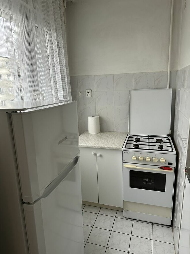 Mieszkanie umeblowane, podstawowe sprzęty, kuchnia wyposażona w kuchenkę gazową, piekarnik, pralkę, nową lodówkę i nową kuchenkę mikrofalową, zainstalowane nowe rolety we wszystkich oknach (rolety i mikrofala nie uwidocznione na zdjęciach), zakupiona nowa wersalka.