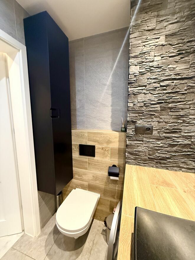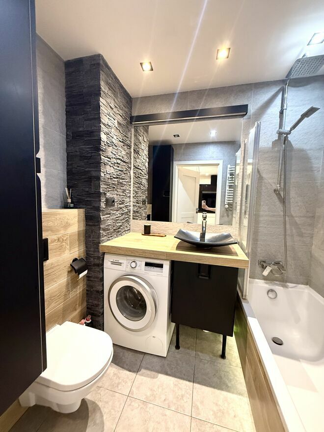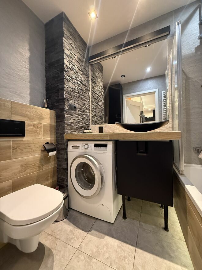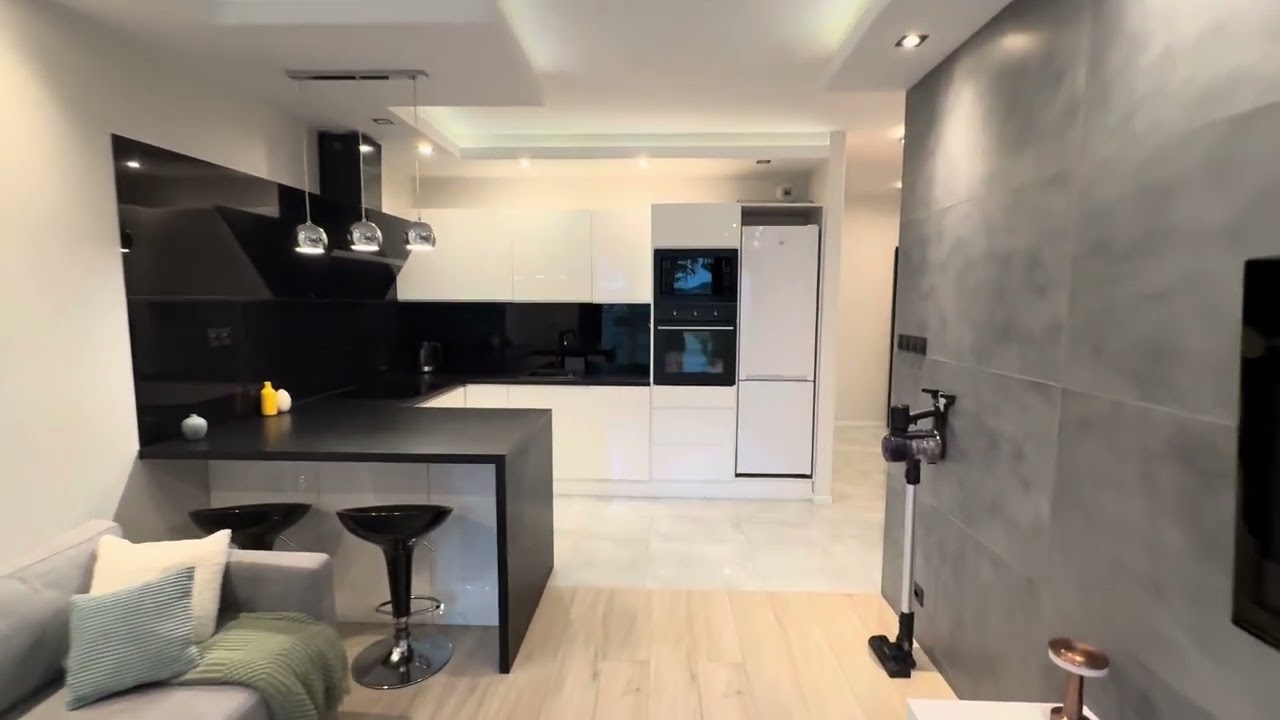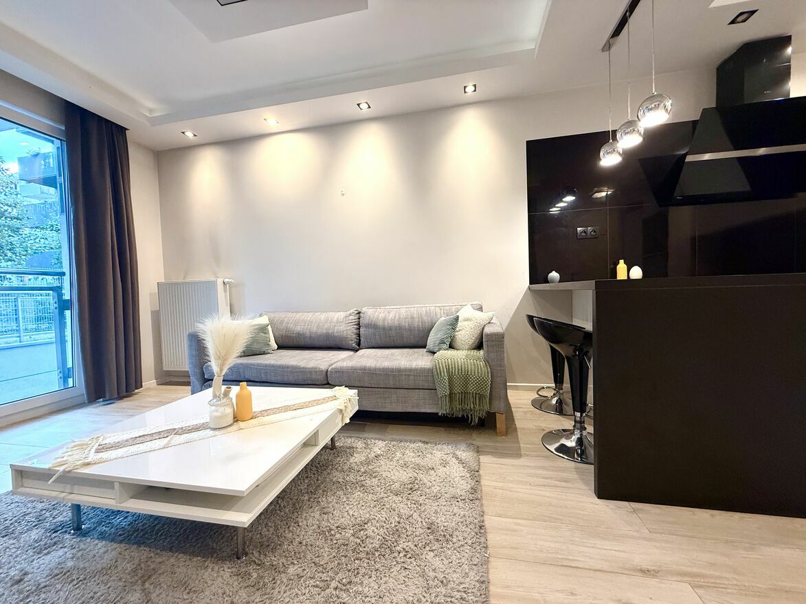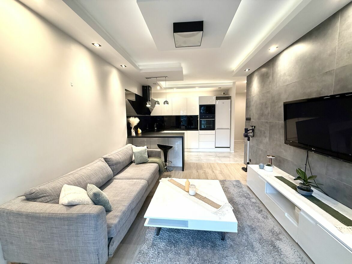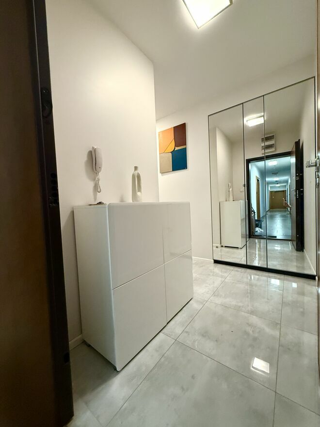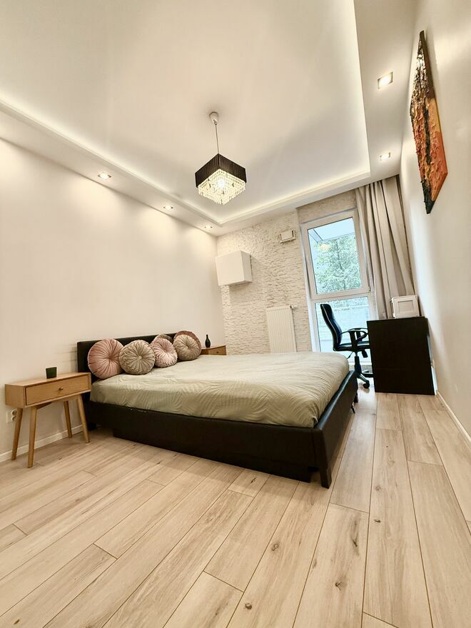The apartment is fully furnished and equipped with the necessary electronics and household appliances (dishwasher, oven, washing machine, microwave,TV). Large windows are an additional advantage, thanks to which the apartment is bright and spacious.