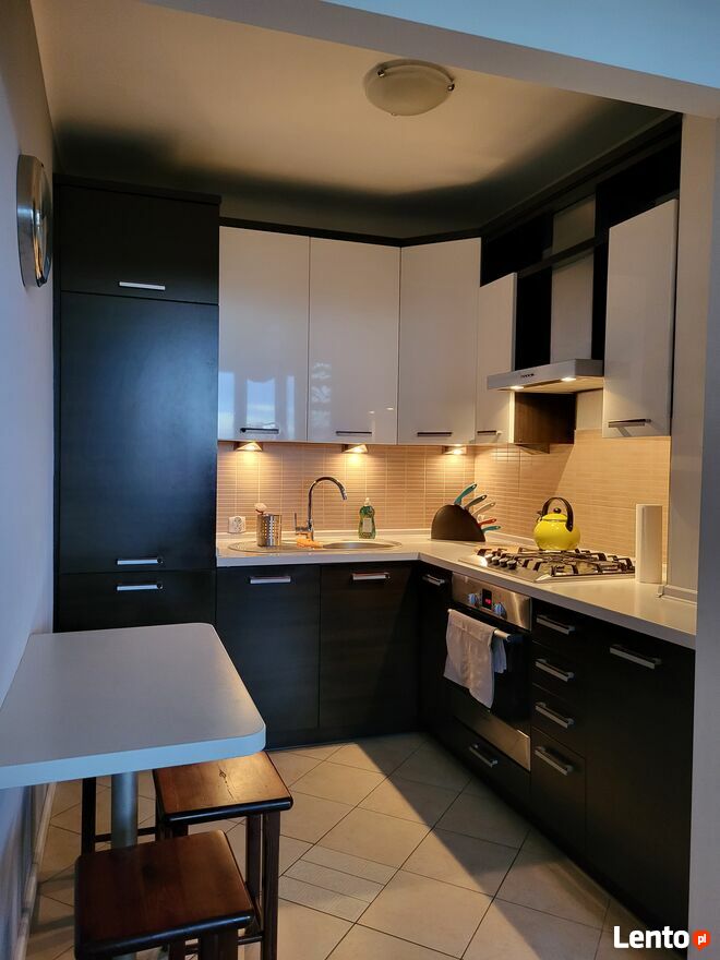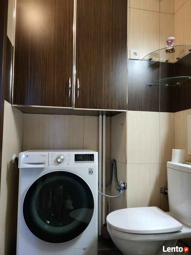 Mieszkanie zadbane, w pełni umeblowane (duża szafa w pokoju, w przedpokoju i łazience szafki na przechowanie rzeczy), wyposażone w sprzęt RTV i AGD. Ponadto kuchnia wyposażona w akcesoria kuchenne.