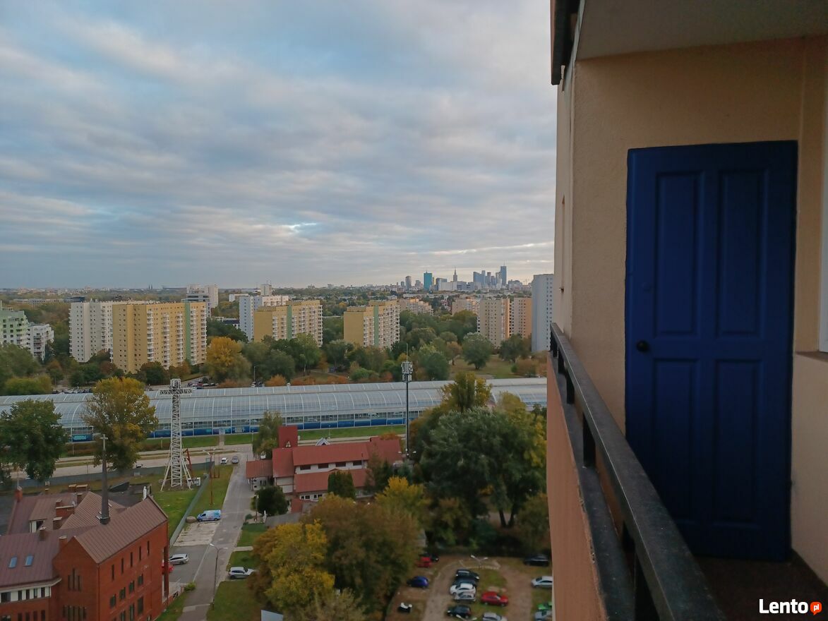 Z pokoju wyjście na spory balkon z pięknym widokiem na Warszawę. Na balkonie funkcjonalny schowek.